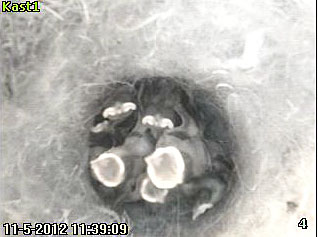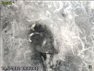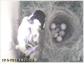 Op 23 mei zijn de Mezen begonnen met de bouw van hun nest in kast3. Ze hebben behoorlijk haast want op 27 mei hadden ze al het eerste ei gelegd. Het nest bestond toen nog geheel uit mos.