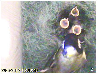 Gaat niet goed. Kuikens krijgen veel te weinig eten. In het begin zaten Pa en Ma mees op 700 to 800 vliegbewegingen per dag nu nog maar op 300. Ook ziet het nest er slecht en rommelig uit.