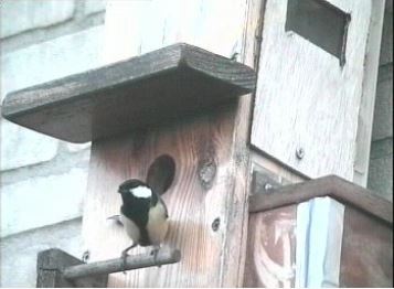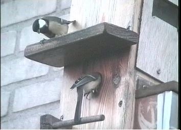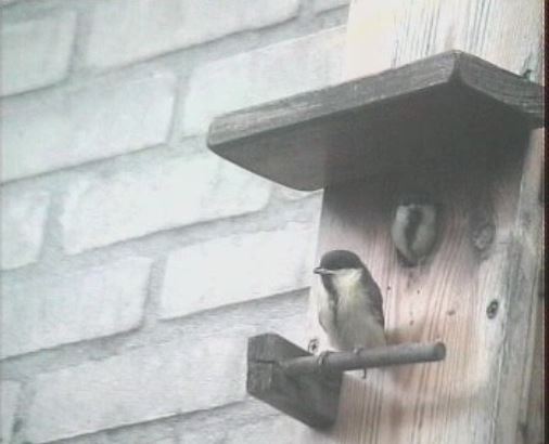 Een Koolmezen paar komt alvast even kijken hoe de staat van de nestkast is. Prima natuurlijk!